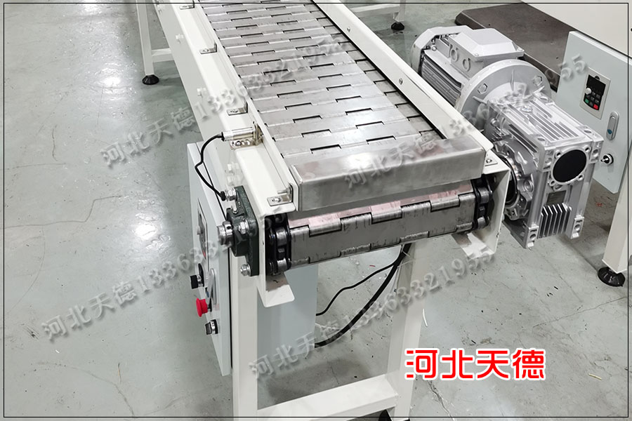 1、鏈板輸送機的輸送面平坦光滑、摩擦力小,物料在板式金屬網帶之間的輸送平穩,能傳送各類玻璃瓶、PET瓶、易拉罐等物料;