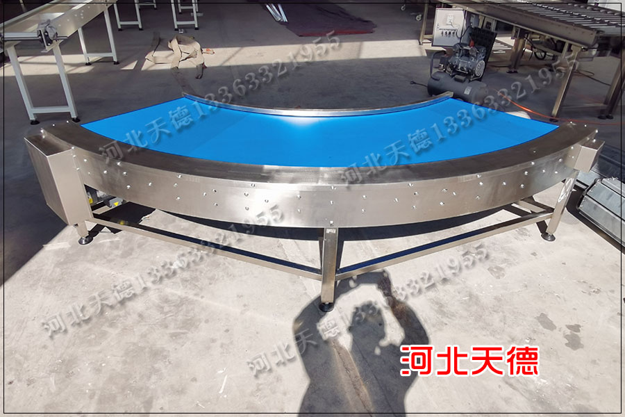 其機長與安裝方式可依據用戶要求確定,傳動可選擇電滾筒,也可選擇帶驅動架的驅動設備。安裝流水線人和機器的有用組合,體現輸送設備的靈活性,把輸送的系統、隨行夾具和在線專機、檢測設備有機的組合,以實現多種類產品的安裝要求。 各出產企業選擇使用皮帶轉彎機時,先把輸送機空載運轉一段時刻,等到確定機械及其他傳動部件處于正常運送和運轉狀況后在啟動。假如皮帶轉彎機在運送和運轉過程中違背運送帶,則應關閉和調整運送機設備,不得為了趕上出產而勉強使用運送機,皮帶轉彎機網帶將因過大的摩擦阻 力而磨損或撕裂,這將導致皮帶的磨損或磨損。在傳遞一些重型物料時,出產企業需要在皮帶運送機兩邊安裝防護板等防護設備,以防止運送速度過快而導致物料滾落而形成其他不必要的事端。在皮帶轉彎機使用時,出產企業也有必要隨時調查設備的運轉情況,進行有用的調整,以更好地進步皮帶 轉彎機的正常使用壽命。