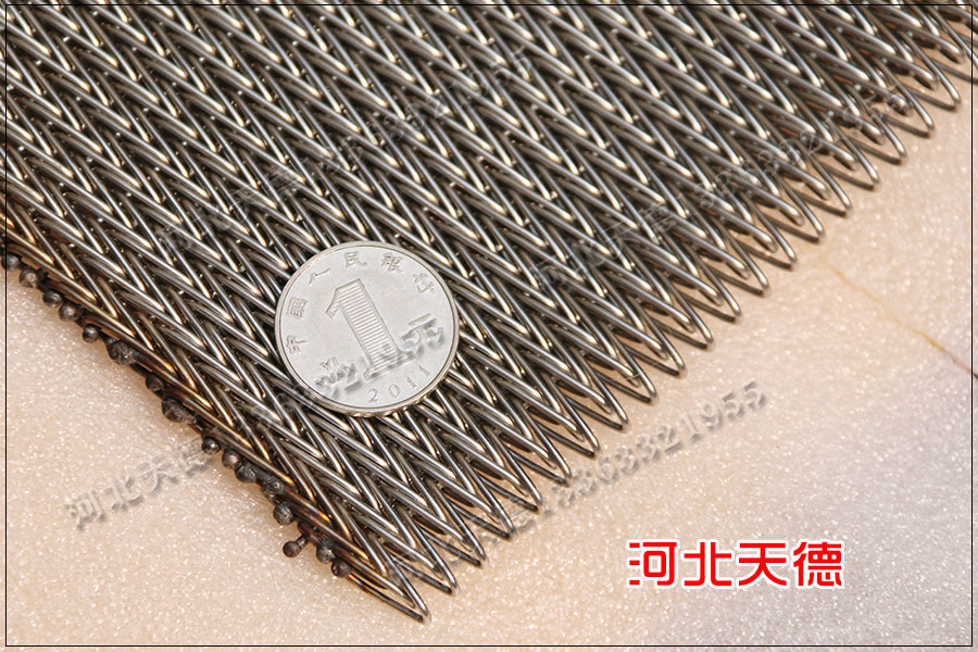 二、人字形網帶的生產:在設計人字形網帶時,準確的螺線徑,牙距及其穿桿間的距離,都是需要經過層層計算出來的。才能確保人字形金屬網帶稀少張弛有度,而且使用中運行靈便。