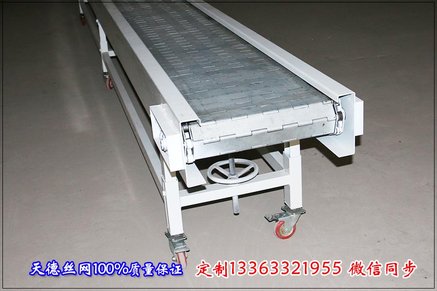 1、鏈板輸送機采用不銹鋼材質制作。鏈板可根據客戶需要定制材質和寬度。