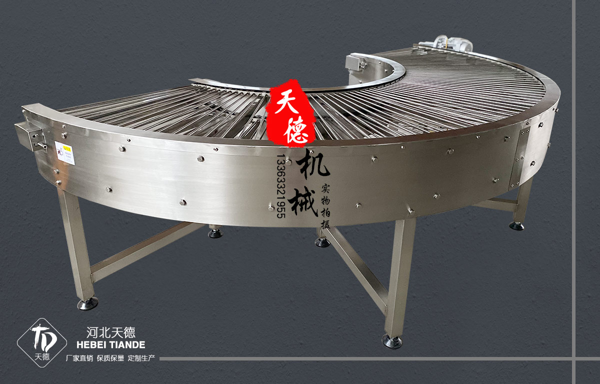 歡迎來電定制河北天德炸雞生產線網鏈式鏈條轉彎機:13363321955 網址:http://m.kingjimmakino.com.cn//