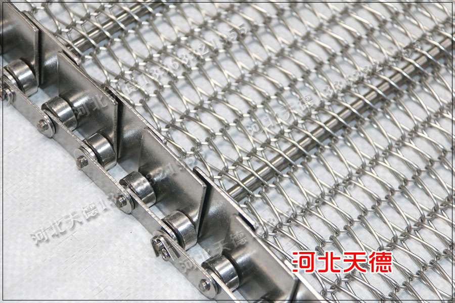 河北天德絲網制品有限公司生產不銹鋼網帶、大滾珠輸送鏈網帶、鏈條輸送網帶等多種規格的輸送網帶。