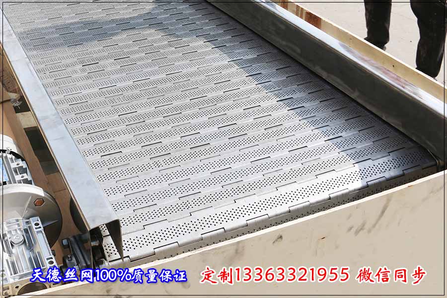 河北天德絲網制品有限公司生產鏈板輸送機、輸送鏈板、機械設備、金屬輸送帶、不銹鋼網帶、板鏈以及各種規格的輸送帶配件。