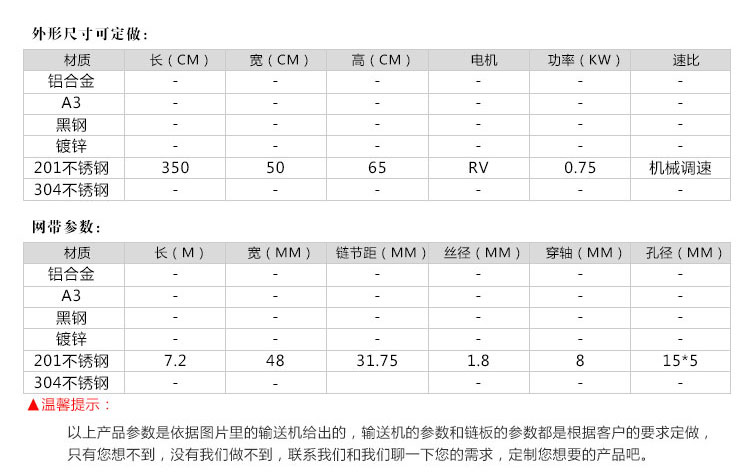 網(wǎng)帶輸送機可根據(jù)用戶車間流水線具體尺寸訂做,電話咨詢。