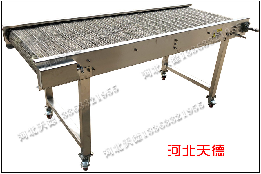 小型網帶輸送機外觀漂亮,移動方便,成本低,采用不銹鋼304材質鏈條鋼絲網輸送帶加工,鏈條采用大滾珠雙節距鏈條輸送,此種鏈條輸送輕便,磨損少,拉力輕,承載能力大?,F在好多大型企業都采用大滾珠鏈條來輸送。